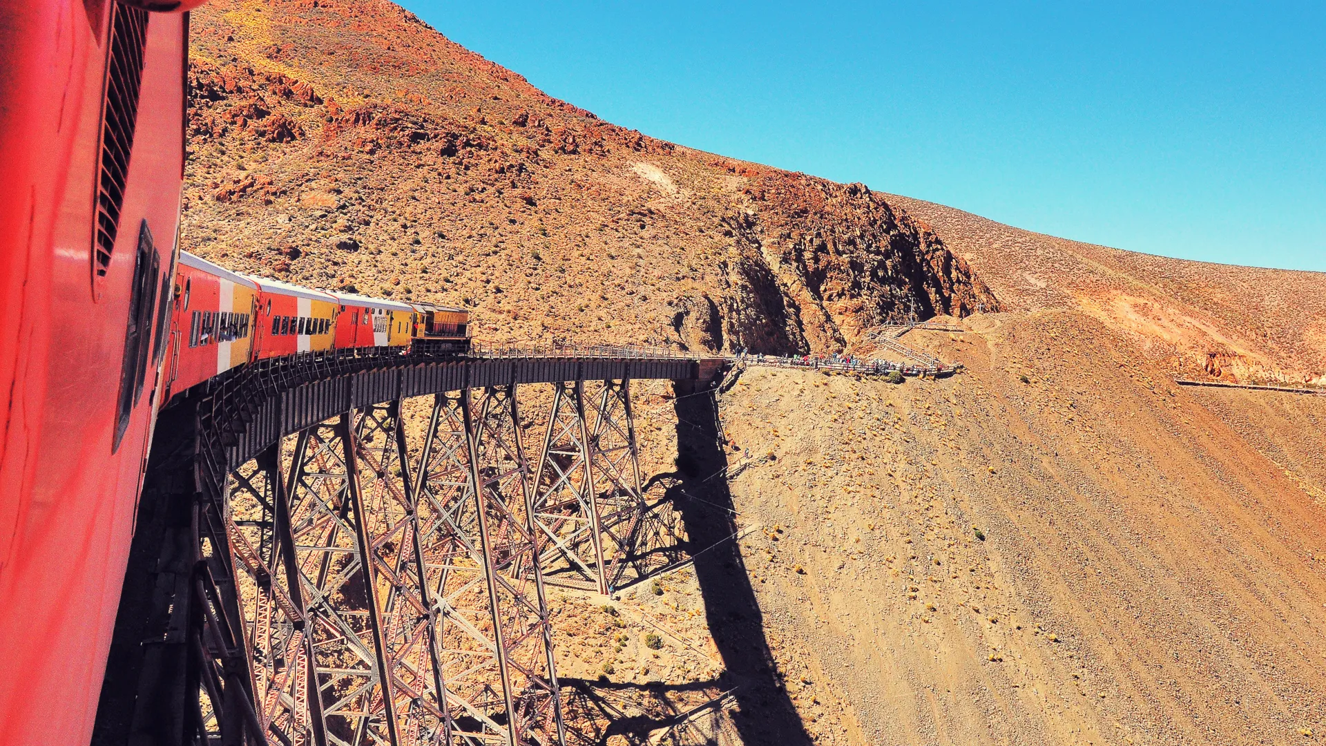- Continuamos hasta San Antonio de los Cobres, uno de los pueblos más emblemáticos de la puna salteña. Desde aquí, quienes lo deseen podrán tomar la opción adicional de visitar el Viaducto de La Polvorilla, punto icónico del recorrido del Tren a las Nubes.